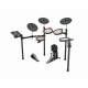Данная установка включает в себя звуковой модуль DSP-7001, один 10" пэд малого барабана, три 10" пэда томов, один 10" пэд бас-барабана, три 12" пэда тарелок (хай-хэт, райд, крэш), а также 2 ножных контроллера (бас-бочка и хай-хэт). Пэды барабанов оснащены сетчатым покрытием, благодаря чему снижается уровень шума, а ощущения от игры приближаются к стандартным акустическим барабанам. Помимо этого, они имеют по две рабочие зоны, которые дают возможность имитировать различные типы звучания. Пэды тарелок изготовлены из экологичного силикона, пэды крэш и хай-хэт имеют две рабочие зоны с глушением, а райд - три. Все пэды обладают высокой чувствительностью, а ножные контроллеры отличаются своей компактностью и могут быть размещены самым удобным для вас образом.